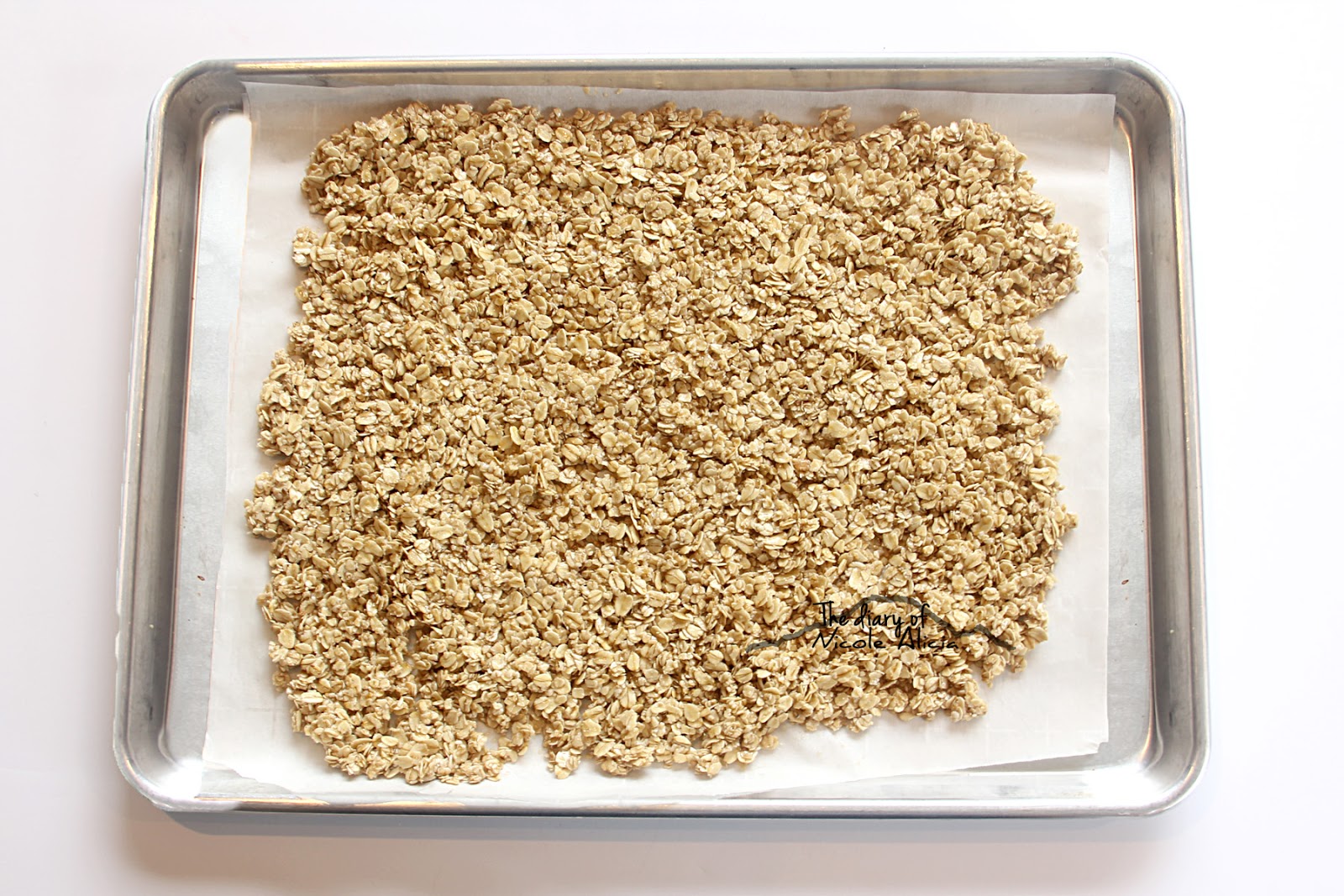 I do not like to break the granola up too much while I am cooking it as we like more of the granola clumps. If you do not like clumps in your granola, feel free to break it up more as you cook it.